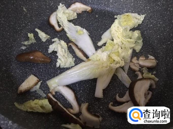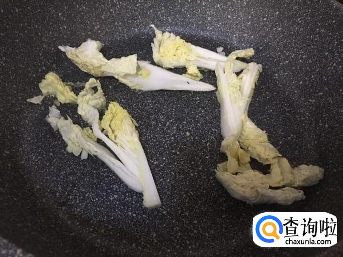 平底锅倒入适量油,把白菜倒入翻炒
