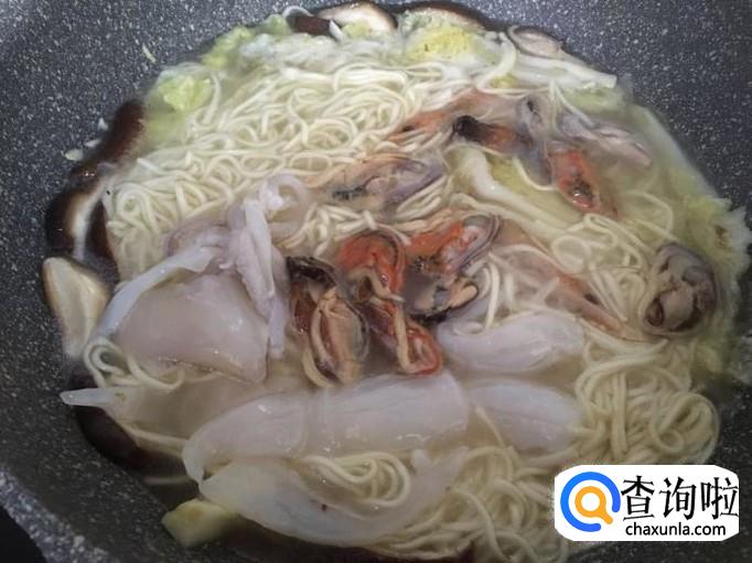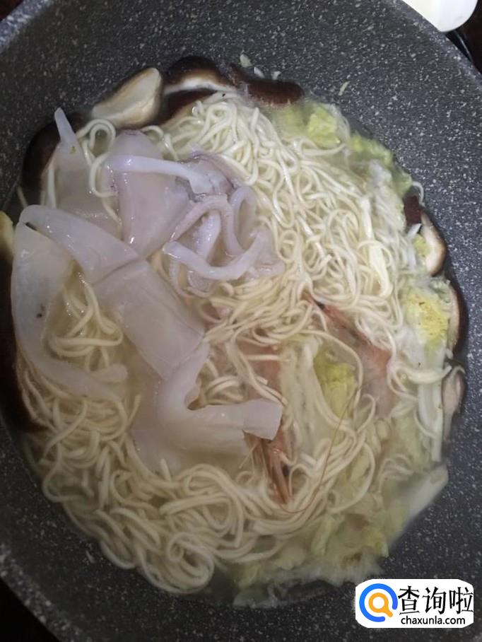 1,虾 2,鱿鱼 3,香菇 4,白菜 4,青口 5,面条 6,盐