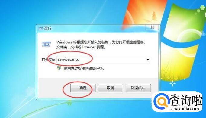 在打开的【运行】窗口中,输入【service.msc】,点击【确定】按钮,如下图所示: