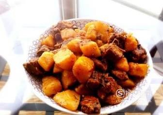 放入土豆,加一点清水炖煮,出锅前撒上一点盐,最后大火收汁,这样一盘简单的土豆烧排骨就完成了,赶快学起来吧!