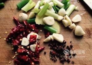 准备配料葱和辣椒切断,大蒜生姜切片。