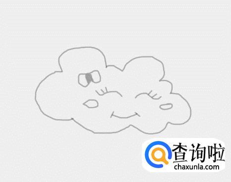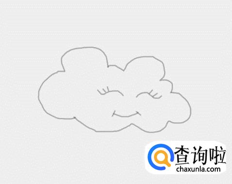 在云彩的外轮廓内画出云彩的两只眼睛和眼睫毛,如图所示: