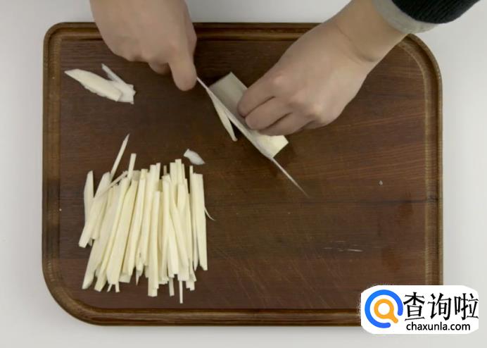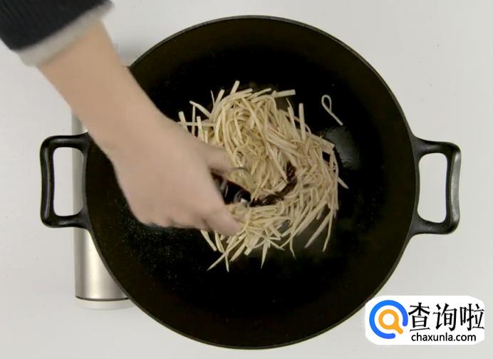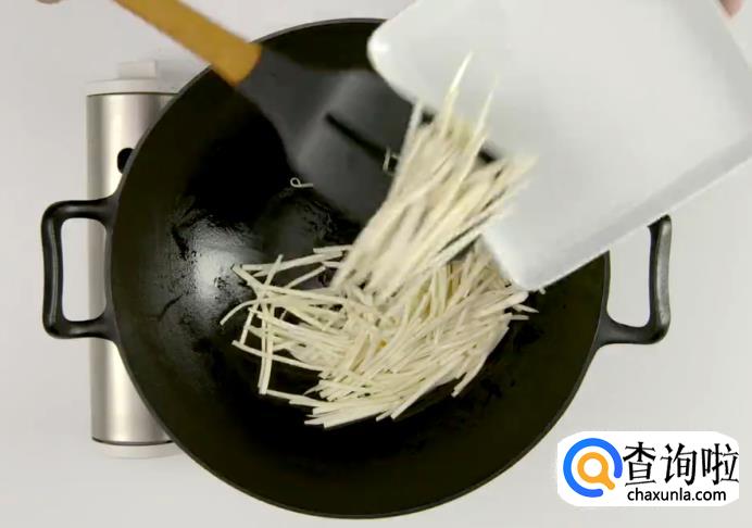 之后起锅热油,下茭白丝稍加翻炒后盛出。