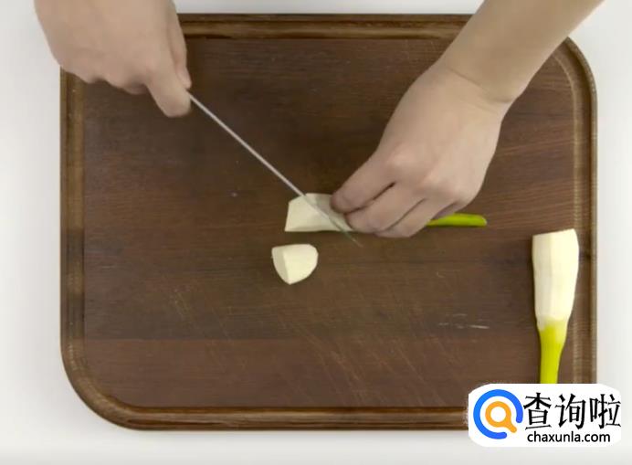 首先茭白去皮洗净,切滚刀块。