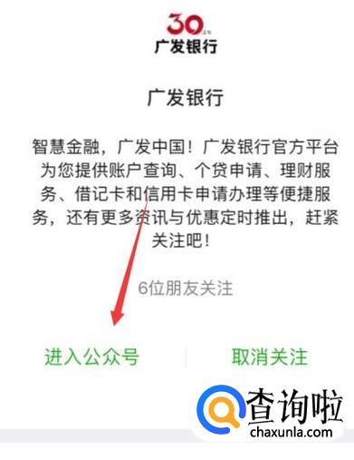 首先你要做的就是进入广发银行的公众号,如果没用关注的可以搜索关注,如下图