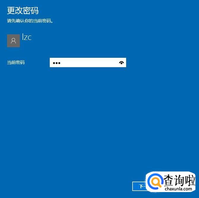 这样我们就可以更改我们电脑的开机密码了。我们输入我们现在的开机密码,然后点击下一步就可以设置新的密码了。