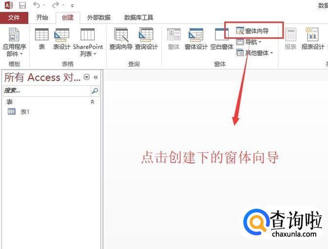 然后我们点击顶部创建菜单,在其二级菜单中的我们点击窗体向导按钮,如下图所示