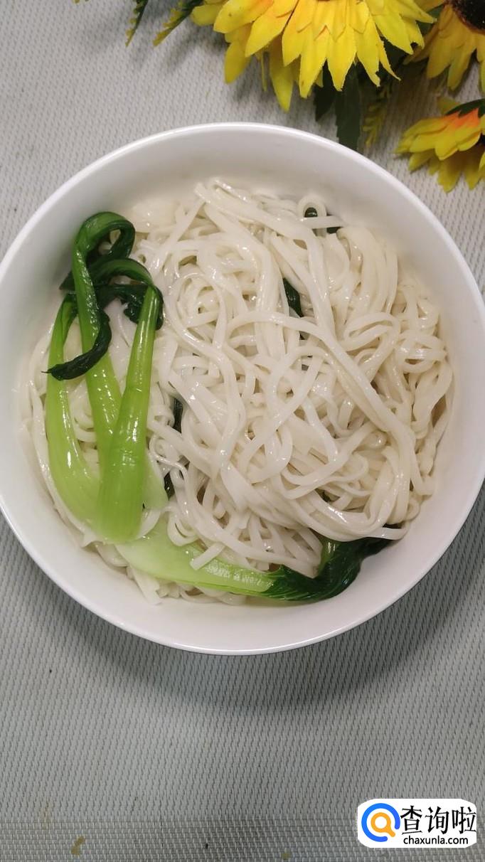 汤锅中烧开水,水开后将面条下入锅中煮熟,可以加入适量的青菜与面条一起煮一下,味道更加鲜美,煮好之后,将面条捞入碗中备用。
