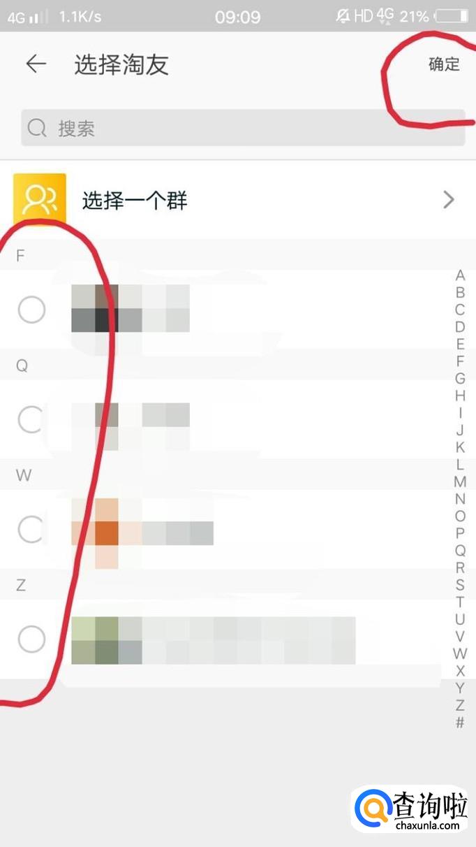 选择要发起群聊的对象,点击确定。
