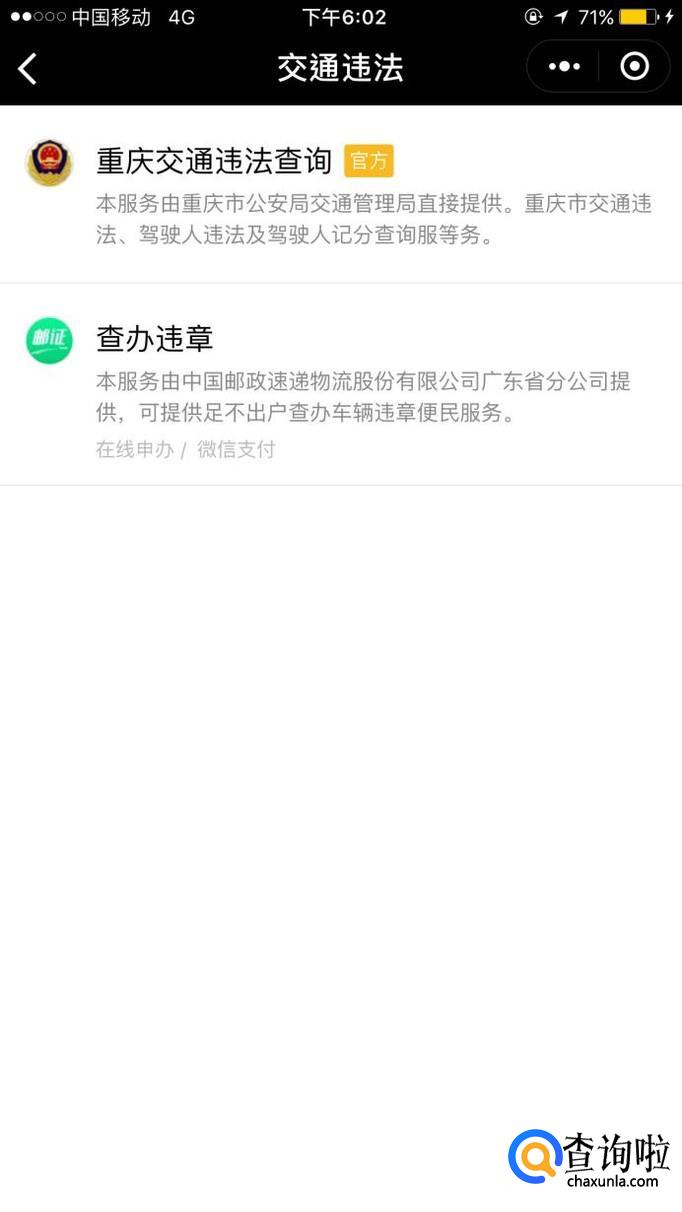 找到重庆交通违法查询,点进去选择机动车违法查询