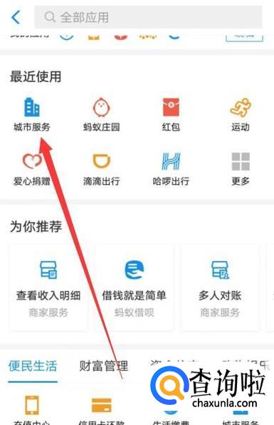 进入之后,点击“城市服务”,进入下一页面,如图所示。