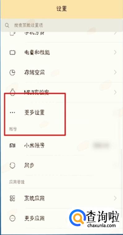在设置界面中找到更多设置。