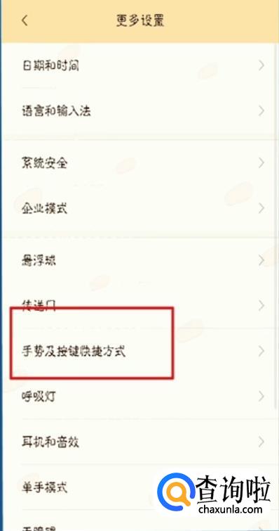 在更多设置中找到手势及按键快捷方式。