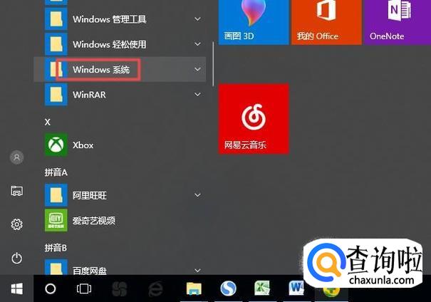 首先,我们点击电脑左下角的微软按钮,弹出的界面,我们进行下滑,找到Windows系统,点击打开它;
