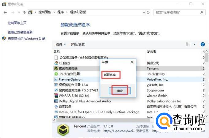弹出的界面,显示卸载完成,我们再点击确定就可以了。