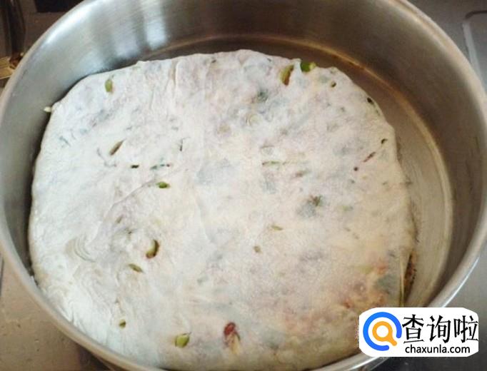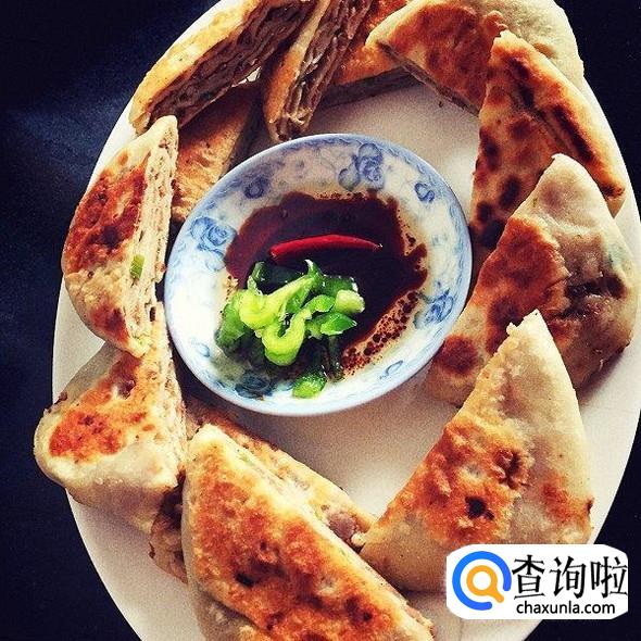 油炸好后,我们拿出牛肉面饼,用刀将饼切成块状,这样,一盘美味的牛肉千层饼就做好啦!