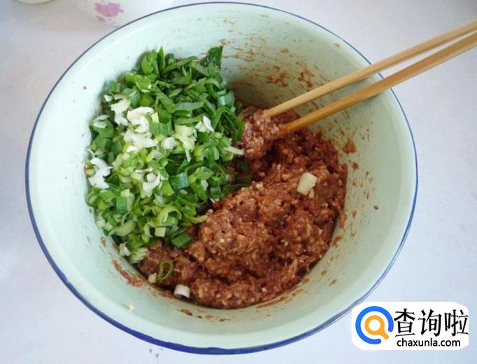 然后在将牛肉和葱剁碎,放在碗中搅拌均匀。