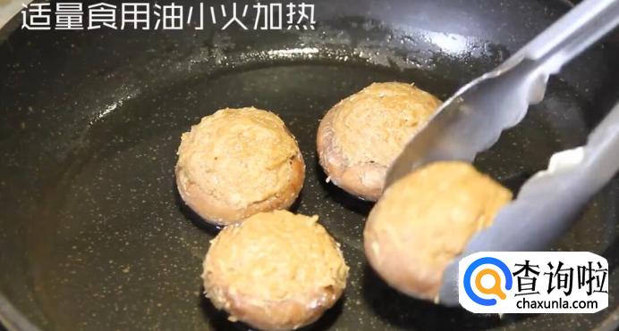 锅内放入适量的食用油,并用小火加热,并将香菇放入锅内。