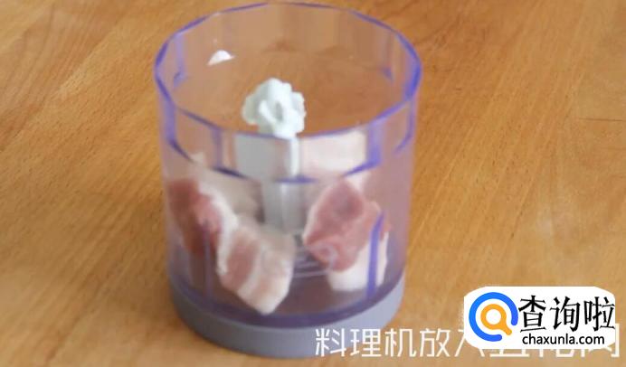 将五花肉、香菇蒂、生姜、大蒜、葱白放入料理机中打碎。