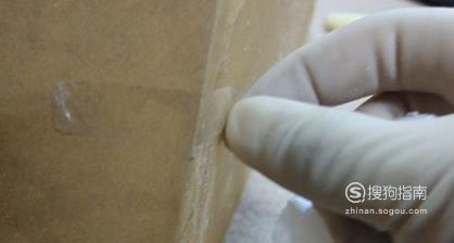 然后就是第三块板,第三块板打胶的时候也需要在下边缘和两侧边缘打上玻璃胶,要求均匀、较厚,然后按压,保证完全接触,然后就用手套抹匀,呈三角形的形状即可