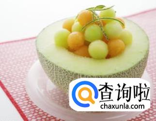 将哈密瓜切成两半,把水果放里面也是很好看的呢。