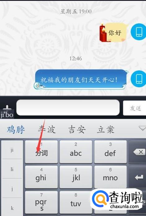 在九宫格上写着“分词”两个字。个分词键的用法就是在自己打字的时候,为了提高拼音输入的准确率来使用的,比如说:我们打liao,如果在那liao这个字的时候,li按下九宫格的分词键,就会出现li·bo ji·an等等。这样我们在打一句话的时候,就可以使用分词键,手机打出来的字就不会有错字咯!!
