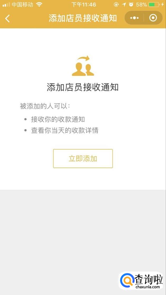 进入到收款小账本的小程序后,点击左下角的添加店员接受通知,需要让朋友帮忙扫了添加。