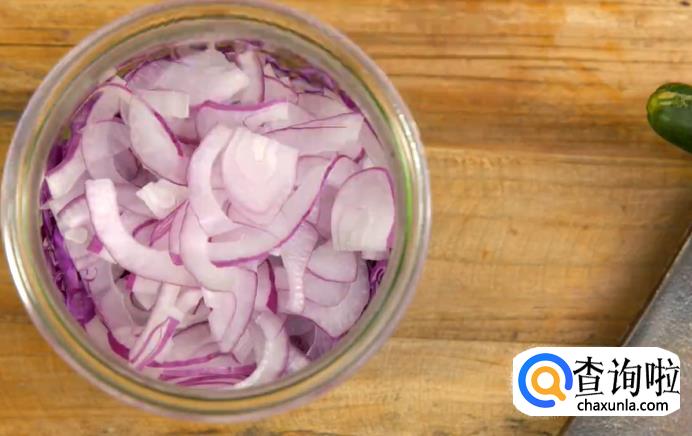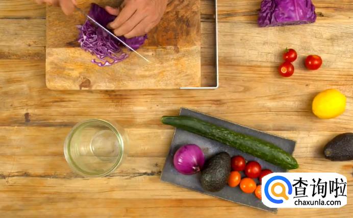 在烤的同时,我们可以准备其他食材。将紫甘蓝洗干净之后切成丝,再切半颗洋葱,也切成丝。