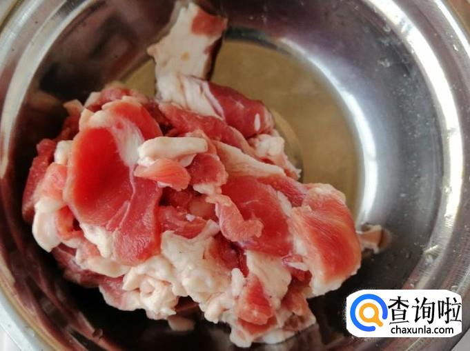 取一块新鲜的羊肉,用清水把羊肉洗净,然后把羊肉放在菜板上,用刀把羊肉切成片,切好备用。