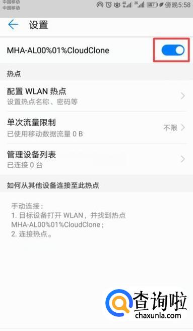 然后我们将热点的开关向右滑动打开;