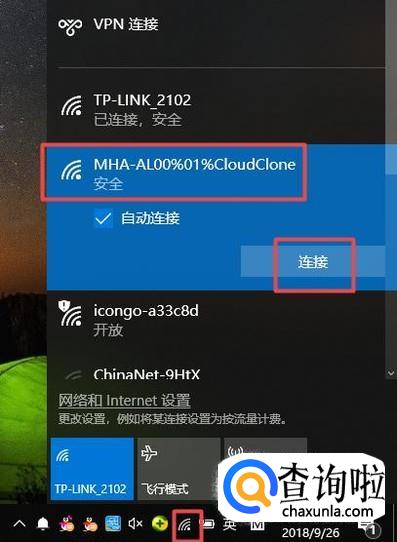 然后我们点击电脑任务栏中的无线网络图标,弹出的界面,我们找到开启的热点,然后点击它,弹出的界面,我们点击连接进行连接就可以了。