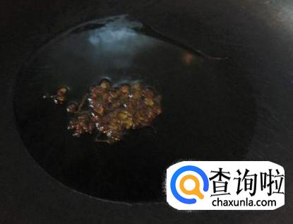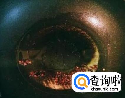 等锅中的油烧热后,将花椒轻轻放入锅中,中火炸。