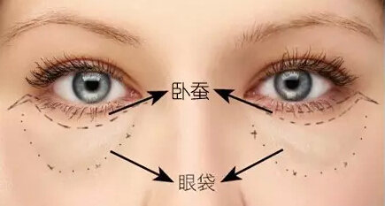 构造不同:卧蚕是一块肌肉,光华丰润,富有弹性;眼袋是一堆脂肪,松弛臃肿,形如袋状。