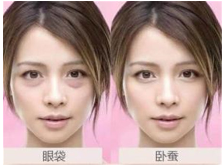 感觉不同:卧蚕最容易出现在大眼睛或眼睛略凸的人身上,观之可亲,与眼袋所带来的憔悴感截然不同。