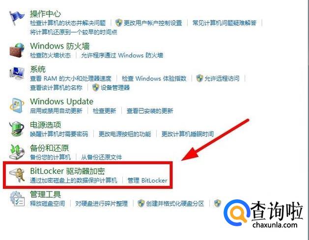 进入系统和安全选项后,找到“BitLocker驱动器加密”,点击进入
