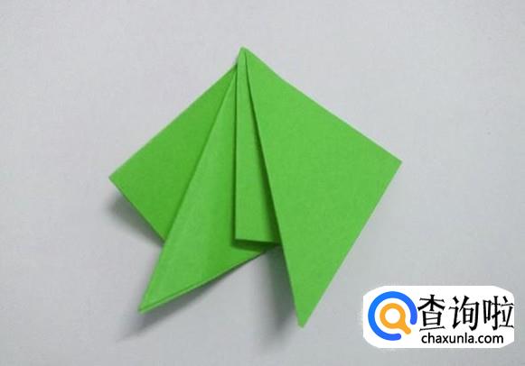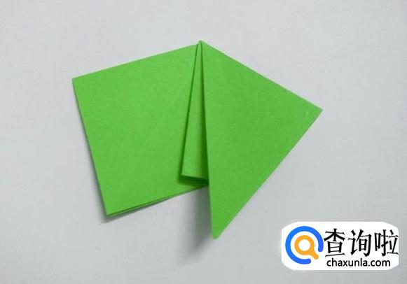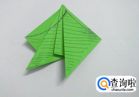 把左右两侧折向中心线,然后打开右侧,沿对角线的折痕向后折一下再次打开,把右侧像下面第二图那样向左压折。