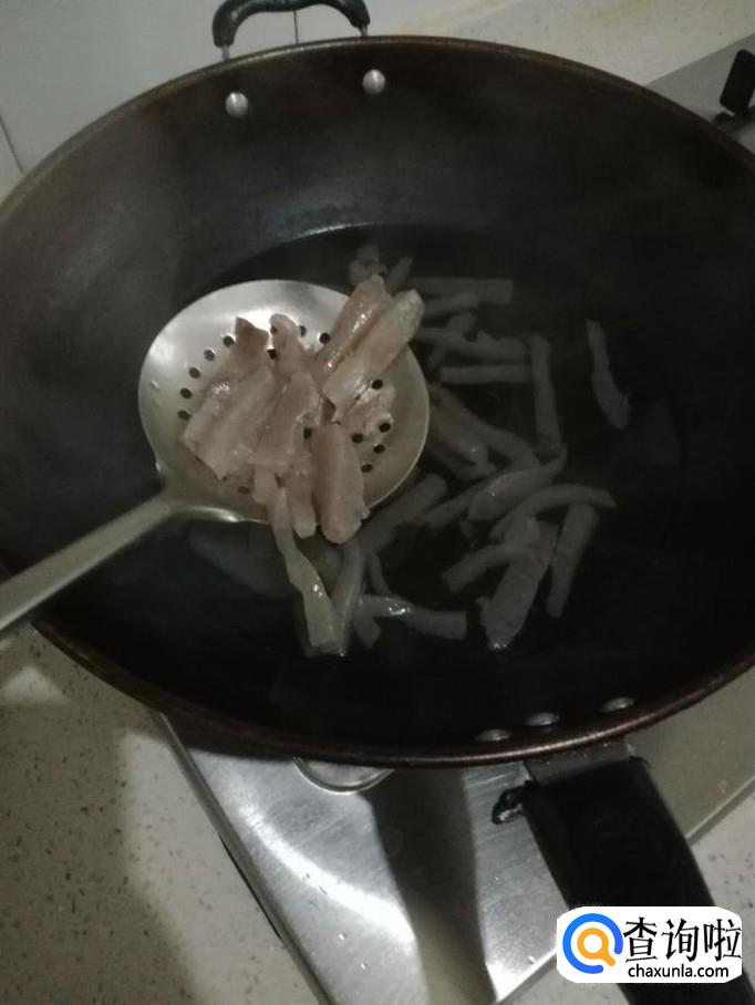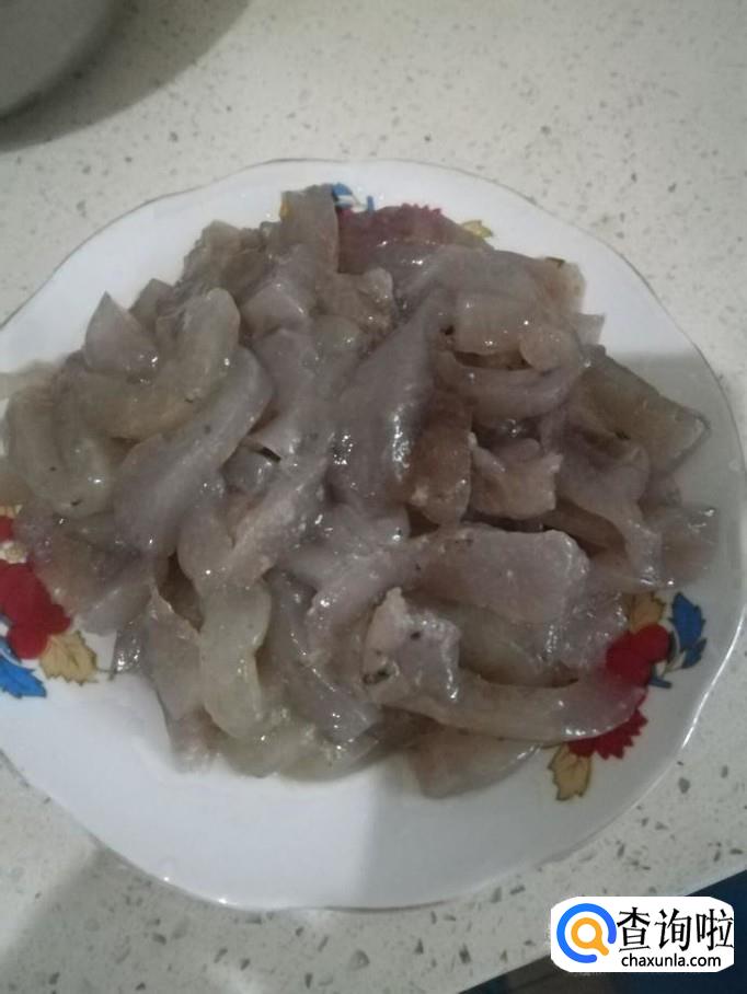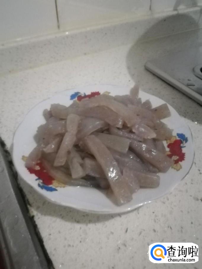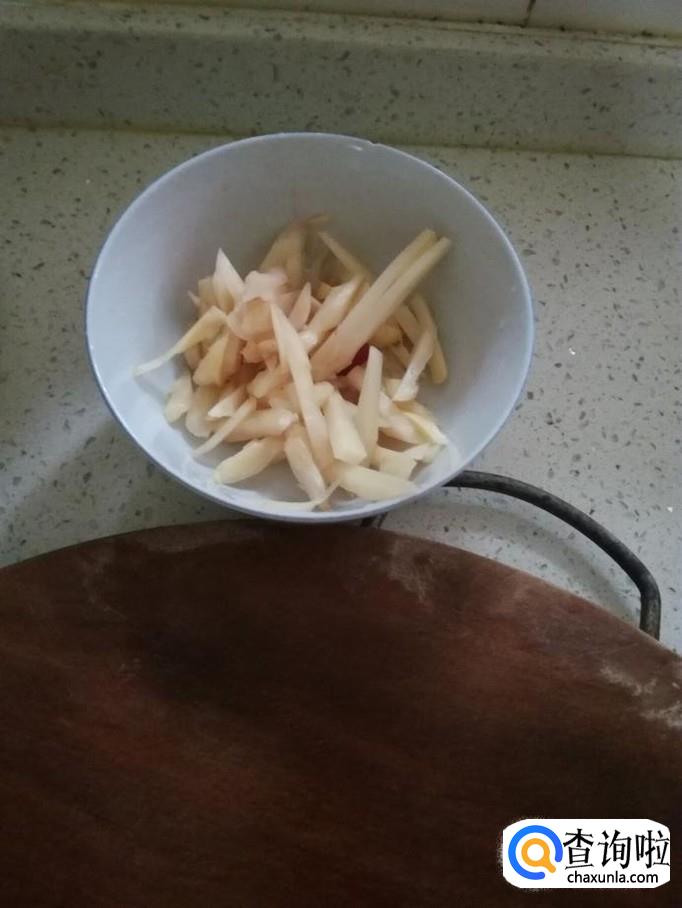 把泡生姜切成长条状,装碗备用。