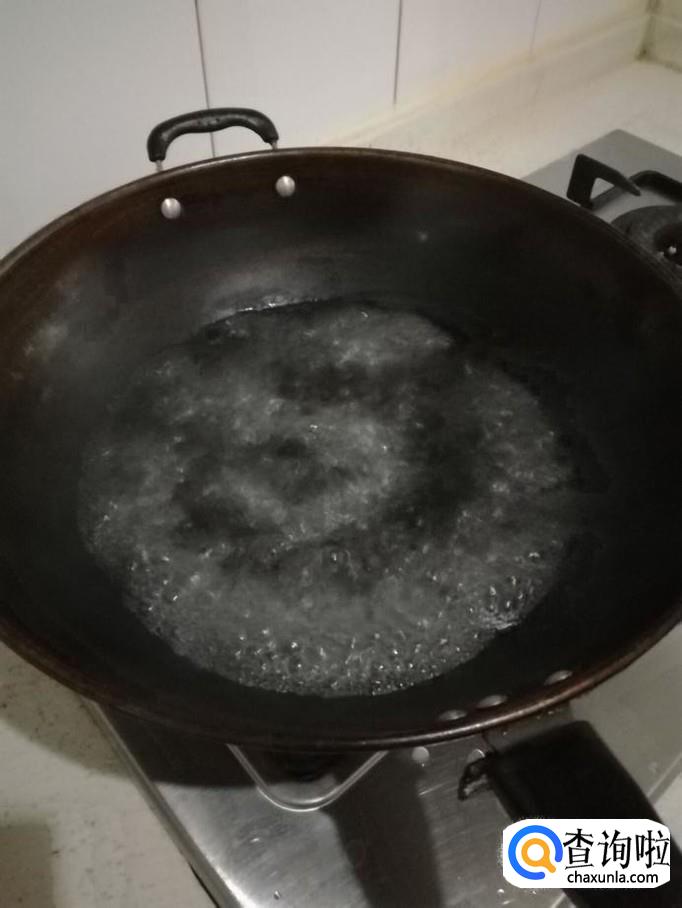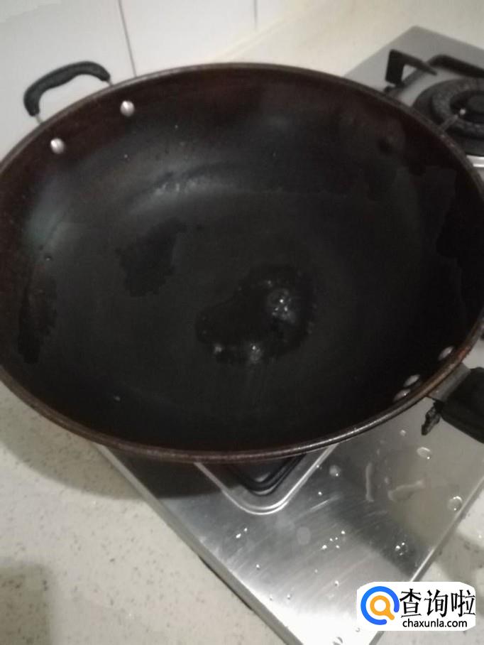 接着把锅里的水倒掉,烧大火,把锅里的水汽烧干。