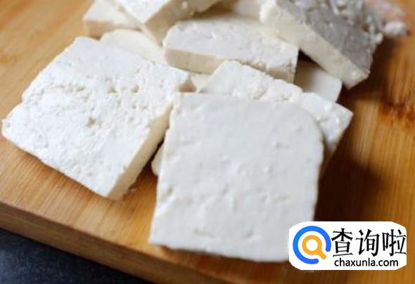现将豆腐切成不是很厚的正方形块状,在开水里住煮过两个钟捞起,然后把水分晾干放置变冷。