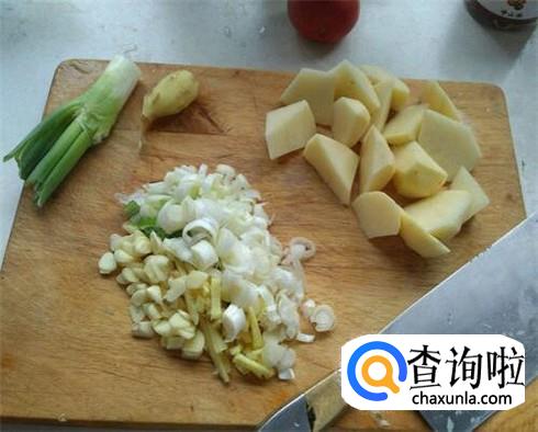准备好适量的姜、蒜、葱,姜蒜剁碎。