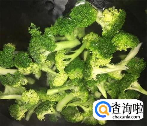 锅里烧开一锅水,水开后,放入西兰花烫3分钟,捞起来沥干水分,备用。