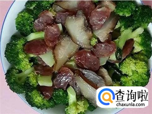 热锅下油,油热后放入姜蒜煸香,然后倒入腊肉翻炒出味道,再加入西兰花和香葱,加入少许的盐调味,翻炒均匀即可,一碟香喷喷的腊肉炒西兰花就做好了。