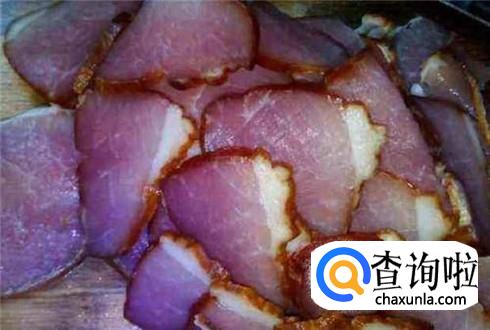 腊肉切成薄片,备用。腊肉也可以用腊肠代替。