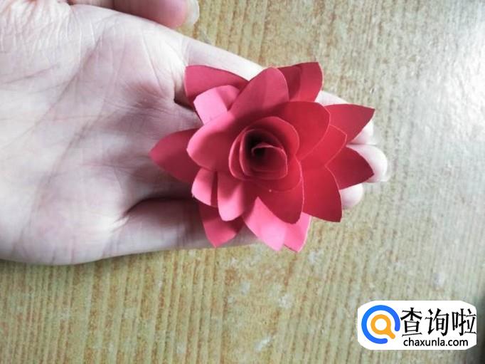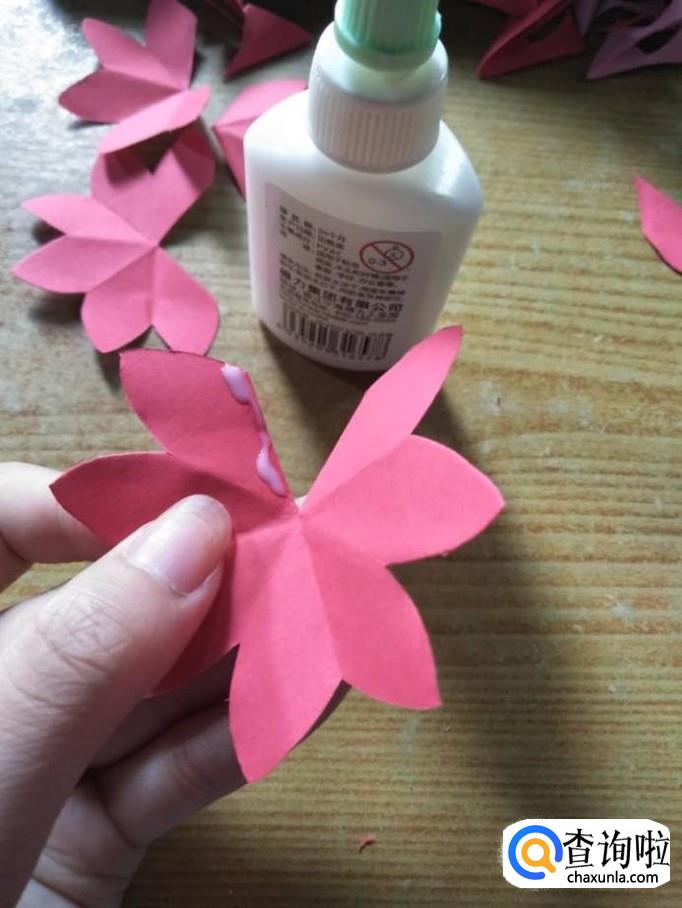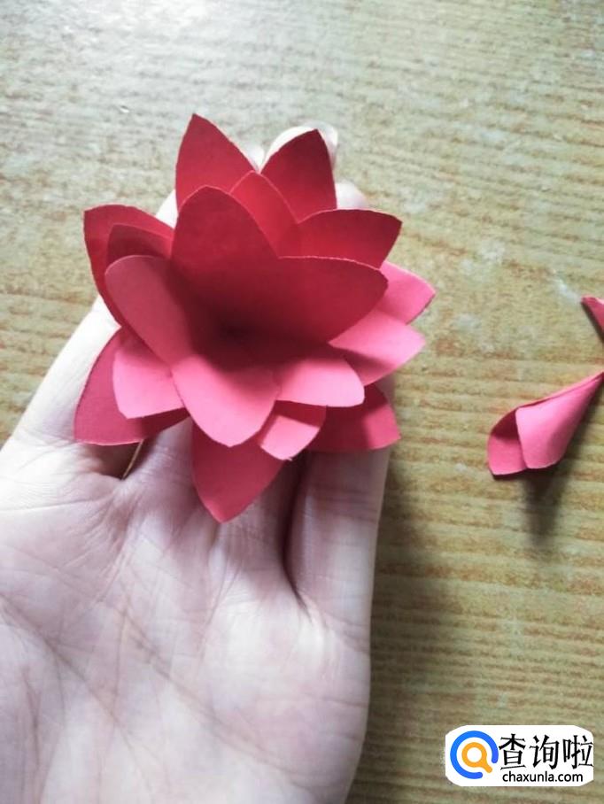粘的时候注意粘出层次感,把下一层花瓣对着上一层的空隙。就像我们照毕业照排队时,要对着空隙站,这样才能把所有的人都照在相片中。粘花瓣时,对着空隙粘起来,更加错落有致,更漂亮。