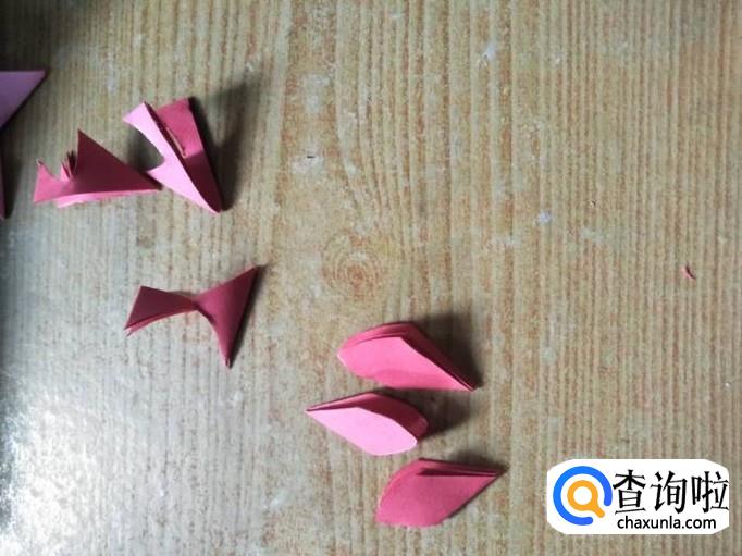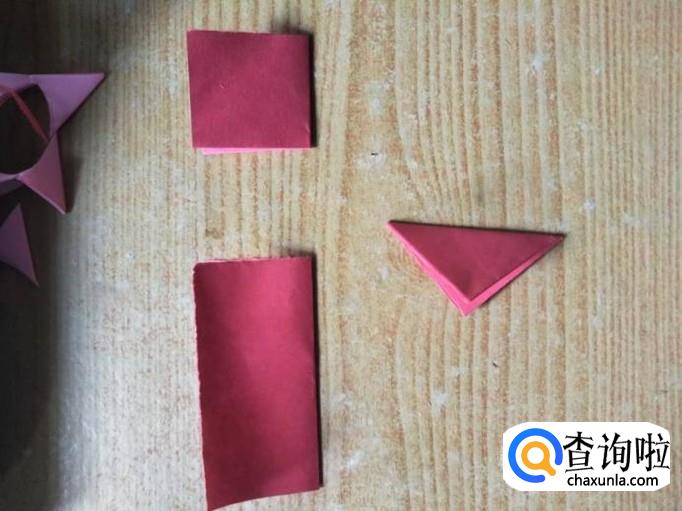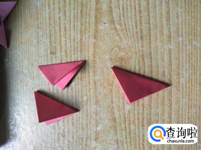 把每一小块纸都对折再对折,成三角形状。对折的时候注意对齐,这样做出来的花更加规整有型。