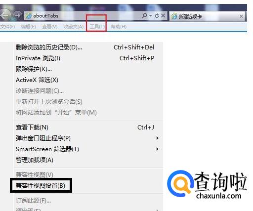 点击“工具”选项,会跳出一个下拉菜单,选择“兼容性视图设置”选项。
