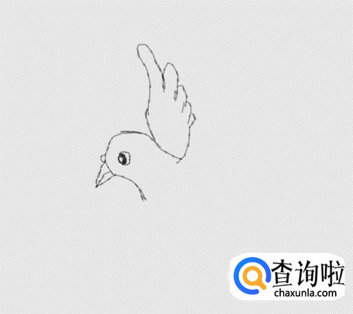 再在头部的后面画出鸽子的一只翅膀,如图所示: