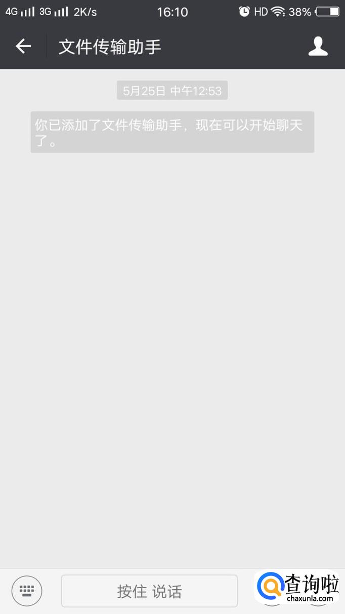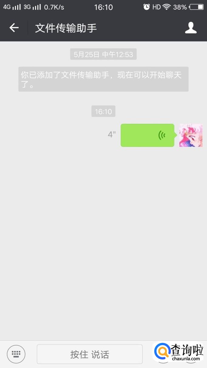 点击后,会出现以下这个界面,点击中间的长方形地方,也就是“按住说话”这里,便可以发语音,发语音期间手不要松开。