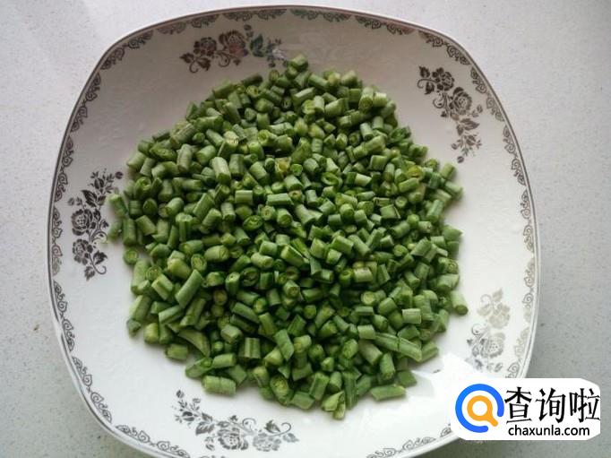 豇豆收拾清洗干净,控干水分,切成碎末。