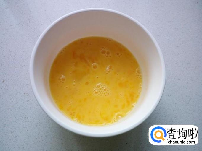 鸡蛋打入碗中,搅拌成鸡蛋液。